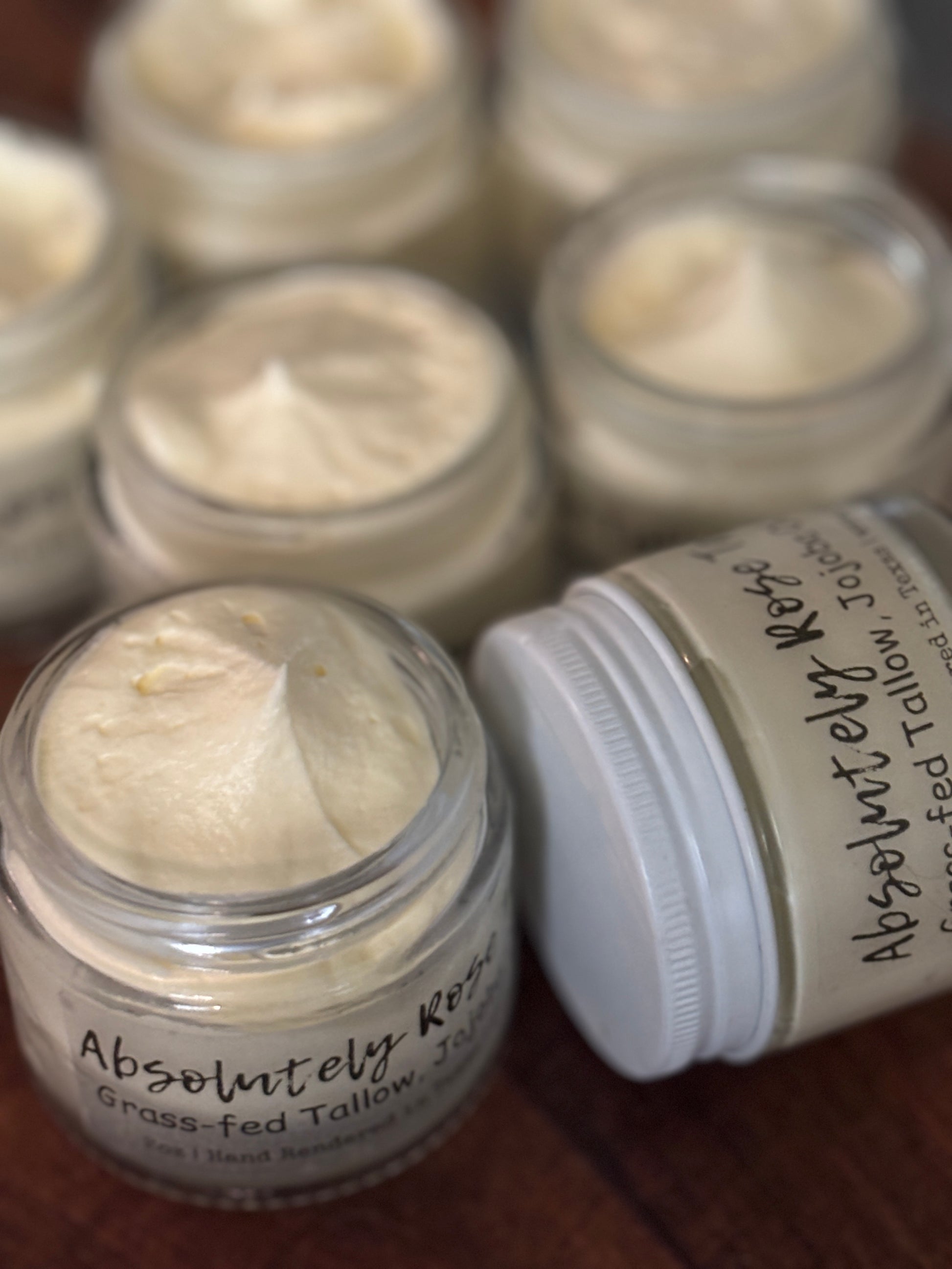 Grass-Fed Tallow, Organic Jojoba Oil, 100% Bulgarian Rose Absolute